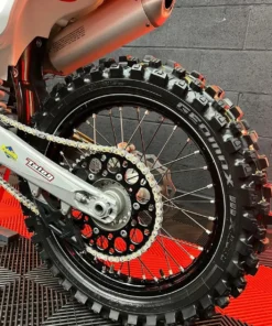 The suspension system is another highlight of this bike. It features top-of-the-line WP (White Power) suspension components, including fully adjustable front forks and a rear shock. These components are designed to absorb shocks and vibrations, providing a smooth and controlled ride. The suspension’s adjustability allows riders to fine-tune their setup based on their preferences and the track conditions.