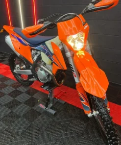 At the heart of the 2022 KTM EXC-F 350 Enduro 12V lies a 350cc 4-stroke engine. This engine is renowned for its perfect balance between power and weight, making it ideal for both amateur riders and seasoned professionals. The 12V electrical system ensures reliable performance, powering the bike’s advanced electronics and ensuring a consistent start every time.
