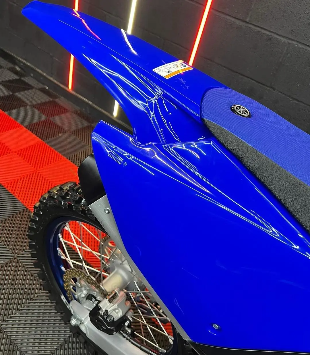 The 2023 Yamaha YZ 125 Motocross 12V features a sleek and aggressive design that not only looks great but also contributes to the bike’s overall performance. The slim bodywork and narrow fuel tank allow for easy movement and better control, while the seat design provides a comfortable and secure riding position.