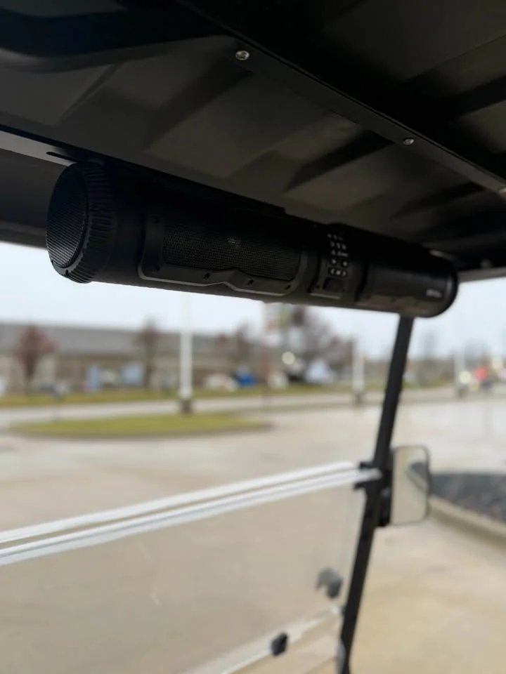- Instrumentation: Molded instrument panel with LED speedometer, single-arm combination switch, FNR switch, multiple cup holders, dual USB ports, and a 12V power supply.