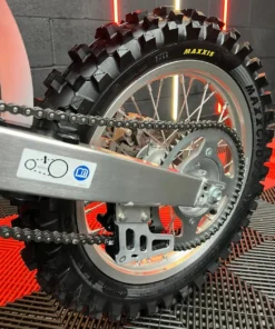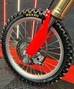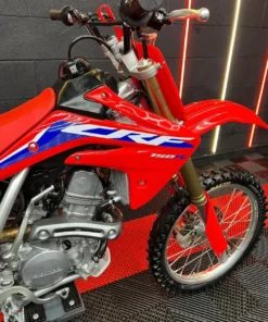 Safety is paramount in motocross, and the 2024 Honda CRF 150 R B doesn’t disappoint. It comes equipped with disc brakes on both the front and rear wheels, offering excellent stopping power and modulation. The front brake features a large, wave-style rotor that improves heat dissipation, ensuring consistent braking performance even under intense use. This setup gives riders the confidence to push their limits, knowing they can rely on their brakes to bring them to a safe stop.