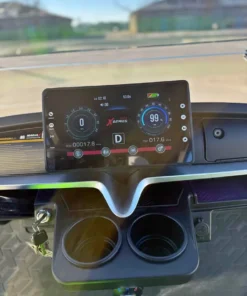 - Interactive 10″ Display: Comes with a 10-inch LCD screen displaying speedometer, odometer, state of charge, and integrated Bluetooth audio controls for an enhanced user experience.