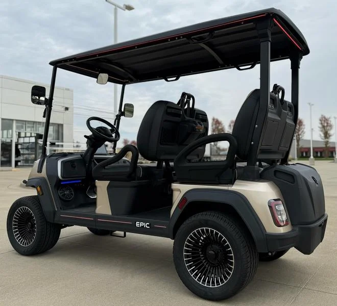 The 2025 EPIC E40FX Golf Cart is engineered to provide a premium driving experience with its powerful motor, advanced features, and stylish design. Whether you’re navigating the golf course or cruising through your neighborhood, this vehicle offers exceptional performance and comfort.