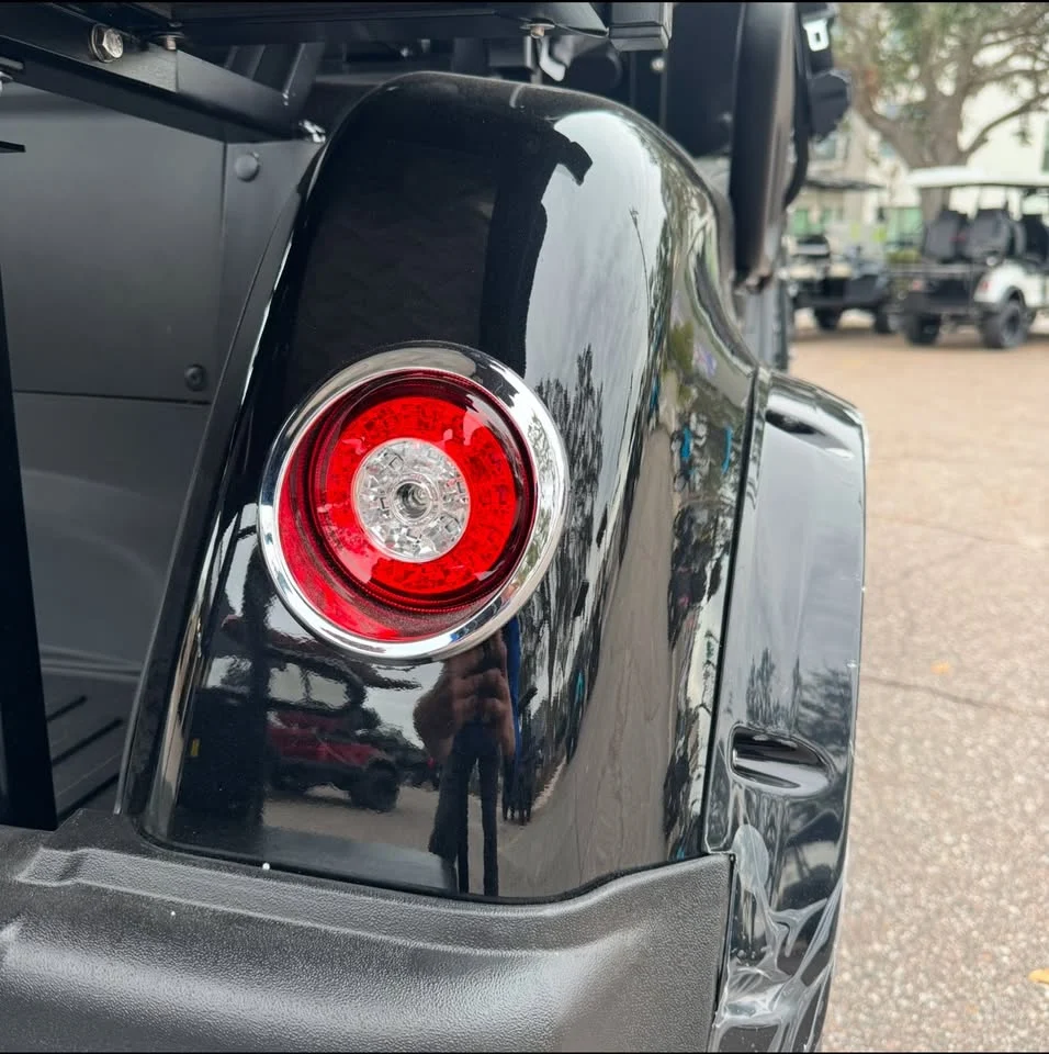 - Safety Features: Includes industry-leading four-wheel disc brakes, an electromagnetic parking brake system, dual-sided 3-point seat belt restraints, rear grab bar, reverse buzzer, charge indicator, back-up camera, gauges, mirrors with dual-sided lit turn signals, hazards, horn, and a glass windshield with windshield wiper to ensure passenger safety.