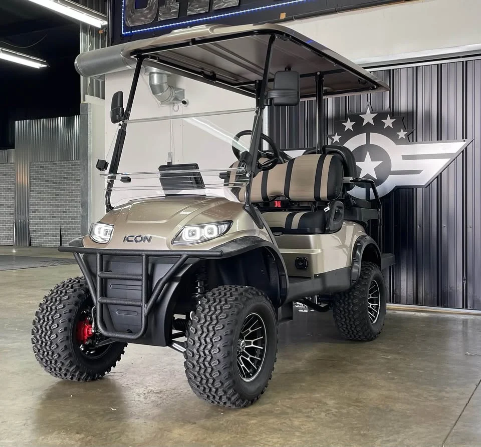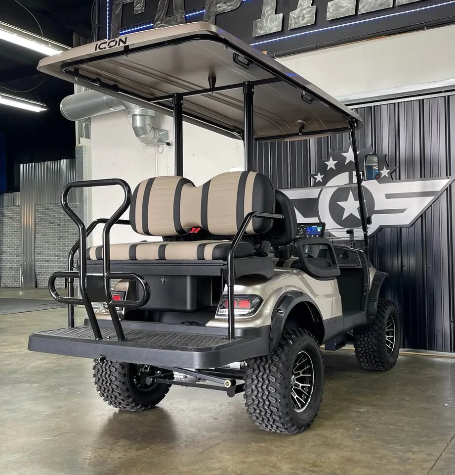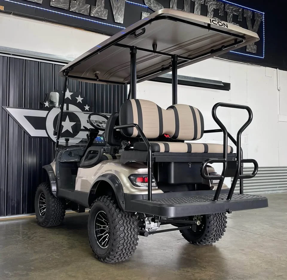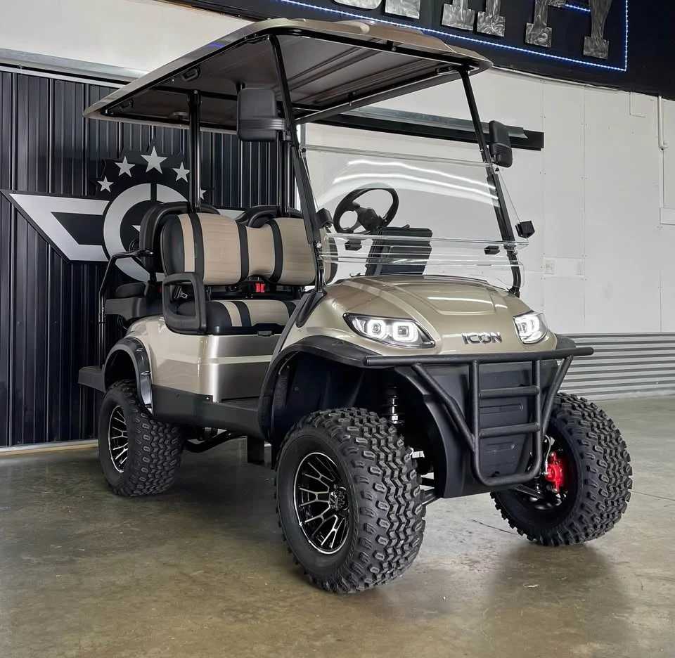 R&R Performance is excited to present the 2024 ICON® i40L Golf Cart, a lifted four-seater electric vehicle that combines style, durability, and power, making it an excellent choice for both commercial and residential use.