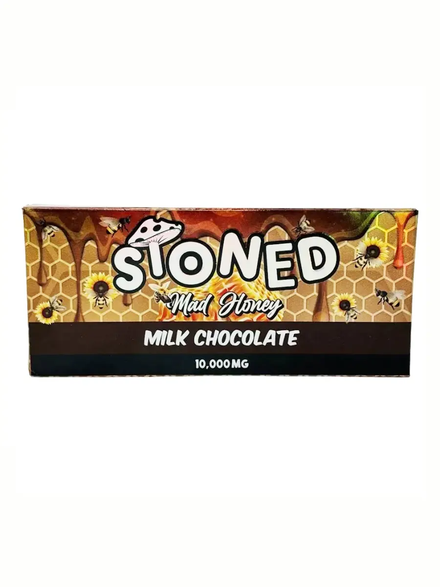 Order Milk Chocolate Stoned Mad Honey Chocolate 10000MG from our online headshop, Olofly, and indulge in a harmonious blend of rich milk chocolate and potent natural ingredients. This remarkable product offers a unique and delightful experience, perfect for those seeking both flavor and effect in their cannabis-infused treats.