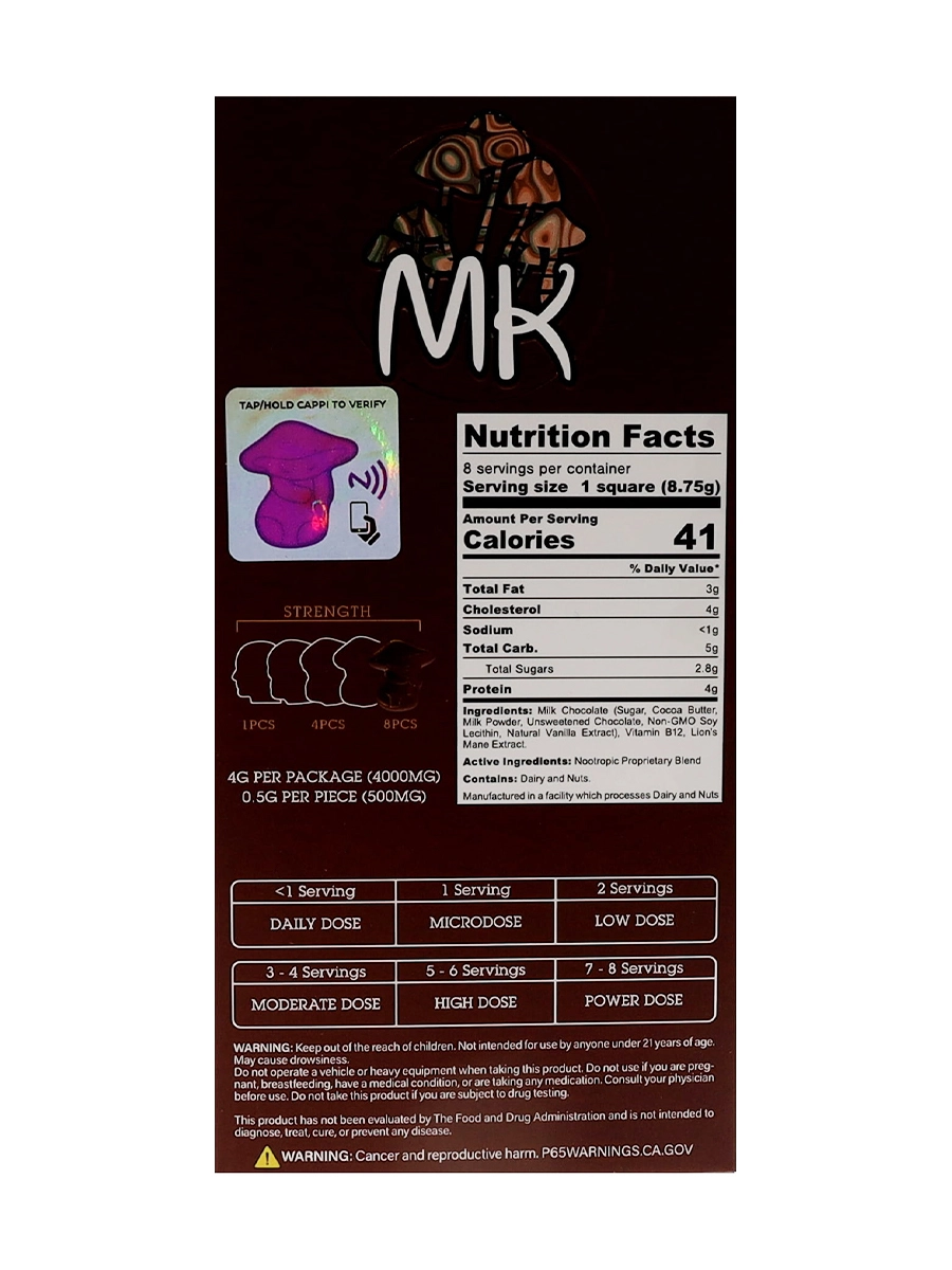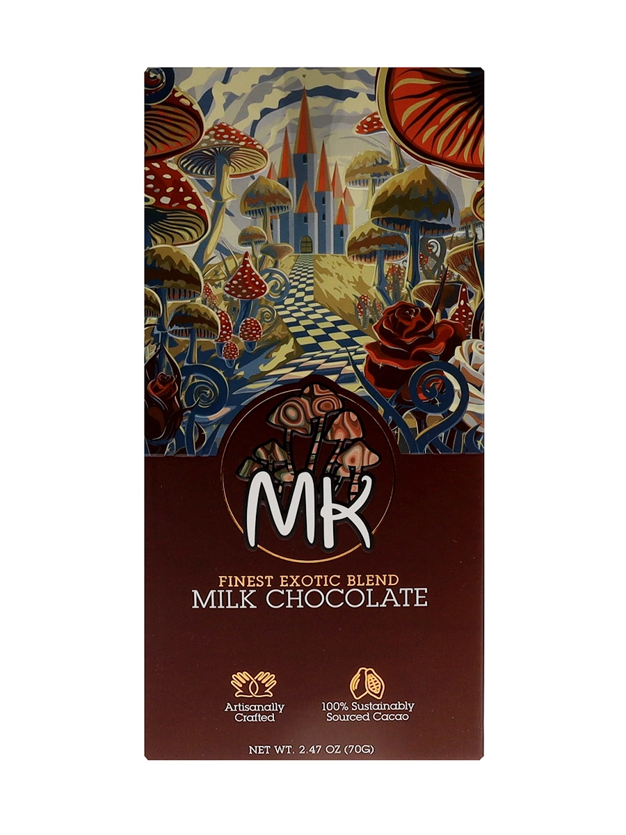Experience the epitome of magic mushroom chocolate luxury with MK Finest Exotic Blend Milk Chocolate Bar. Crafted with the finest ingredients, each 70g bar delivers a symphony of creamy milk chocolate flavors that melt in your mouth with every bite. With 8 servings per container, indulge in a moment of pure bliss with each perfectly portioned square. Whether you’re treating yourself to a decadent snack or sharing the joy with loved ones, our milk chocolate bar promises an unforgettable experience.