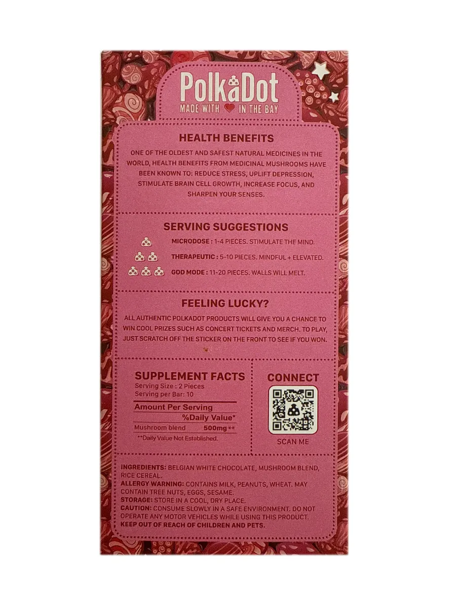 Intense Dark PolkaDot Magic Mushroom Belgian Dark Chocolate 500mg