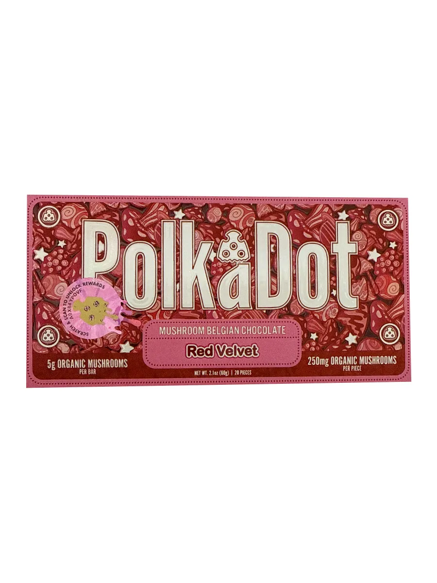 Indulge in the luxurious taste of Red Velvet PolkaDot Magic Mushroom Belgian White Chocolate. Every piece promises a moment of delight, combining rich flavors with a subtle psychedelic twist. Don’t miss out on this unique and extraordinary treat—order now from our online headshop, Olofly, and elevate your senses to a whole new level.